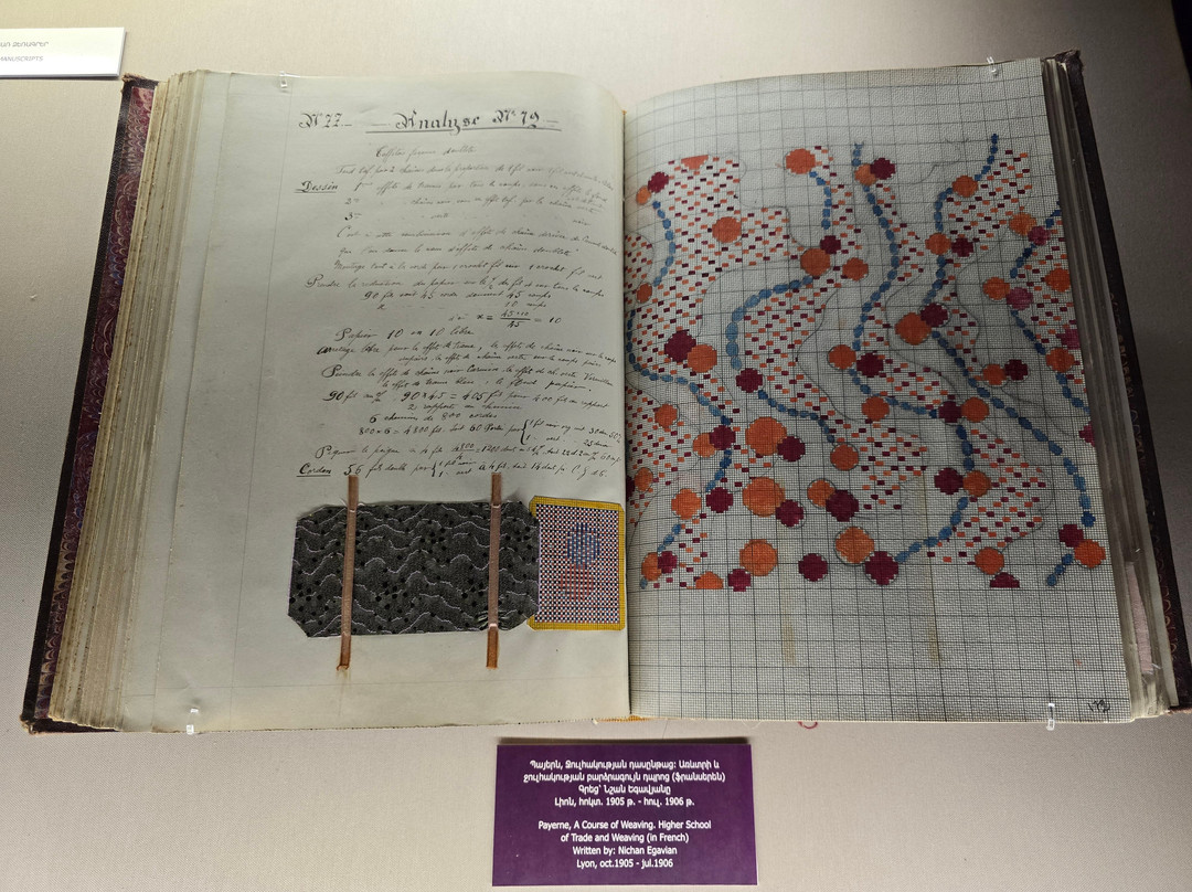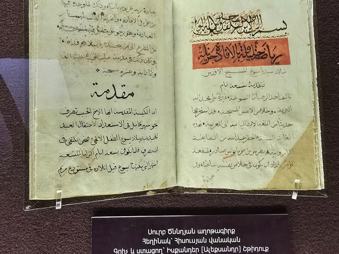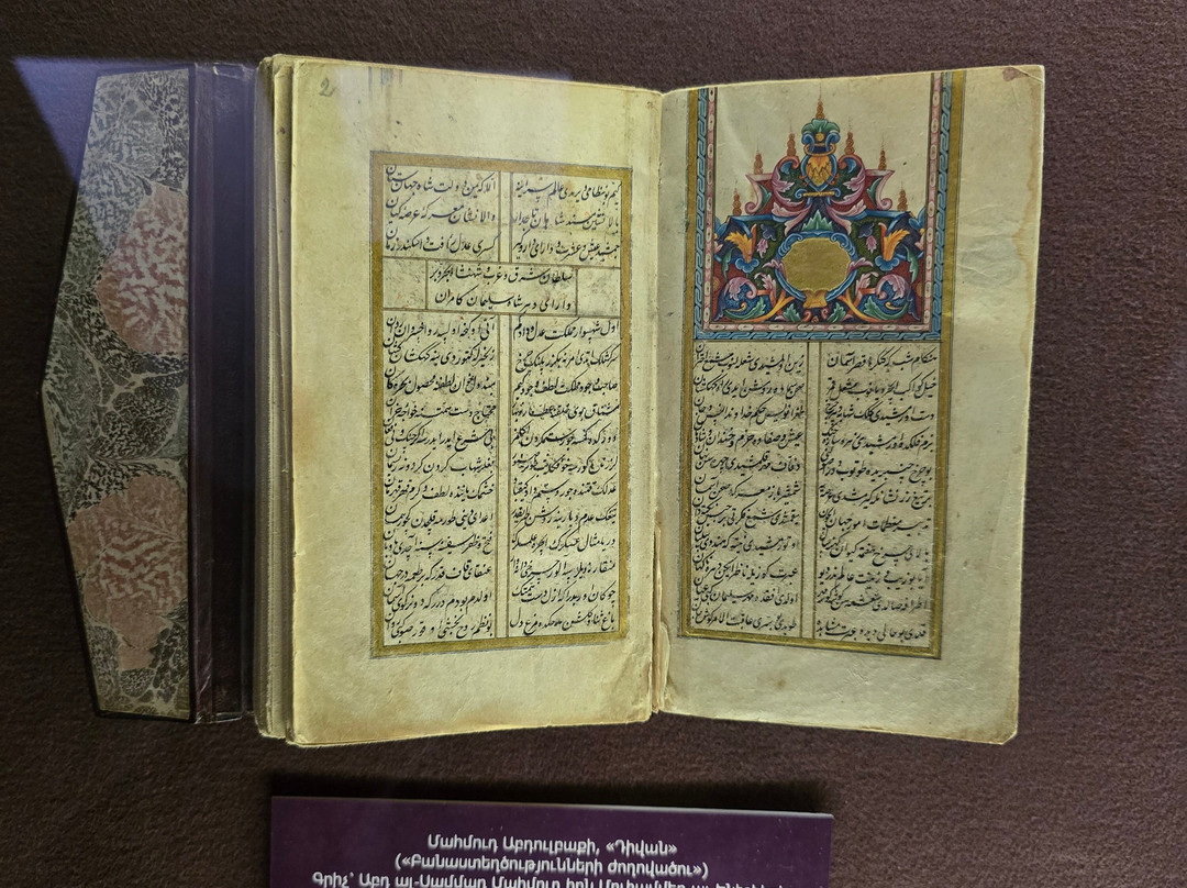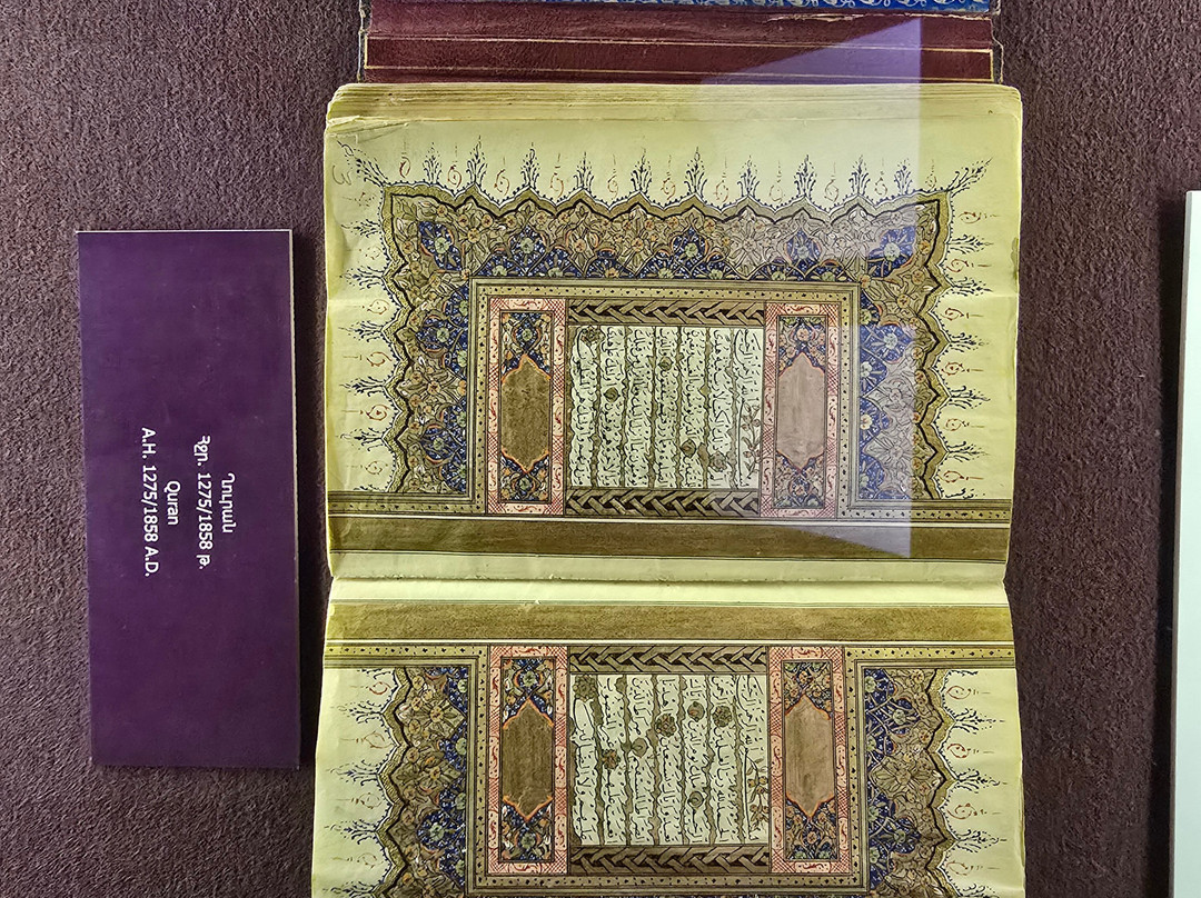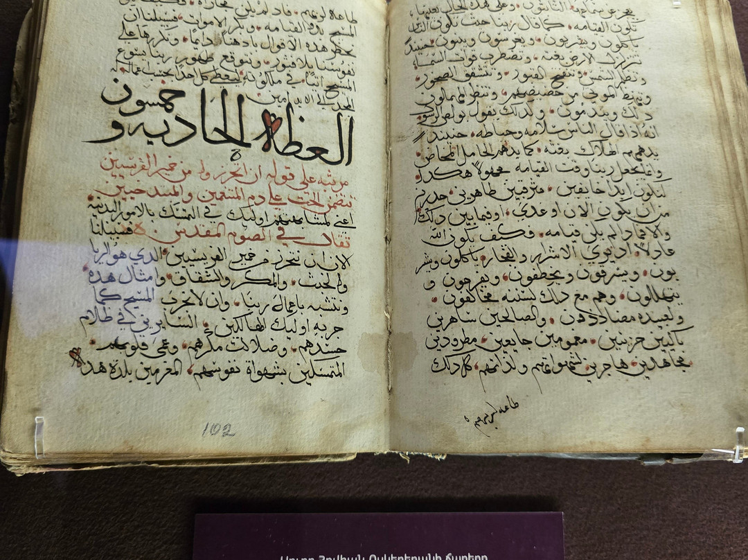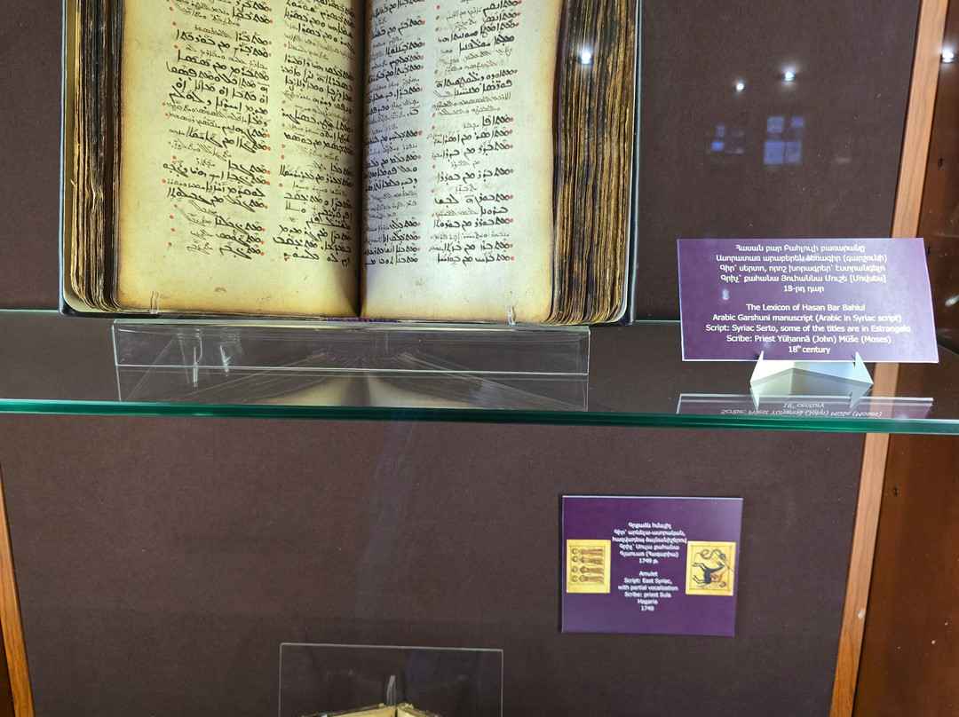 点评:That is one of the best established museums in Armenia. It houses one of the greatest collections worldwide with more than 23000 manuscripts and over half of a million documents. The majority of these manuscripts are obviously Armenian, while there are also many manuscripts in many historical languages (arabic, Persian, Turkish, Greek, Latin, Russian, Cyrillic, Slavic,...etc, and in all aspects of sciences, though a great percentage are religious manuscripts.
