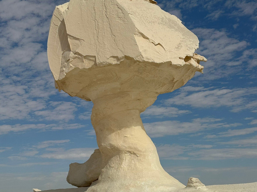 翻译:白沙漠绝对值得一游,至少要安排一晚住宿,欣赏璀璨星空,感受沙漠的静谧与浩瀚。白沙漠的石灰岩结核为不断变化的沙漠景观增添了引人注目的特色。有的区域拥有巨大的白色石灰岩结核,形状各异,有的像尖峰,有的像动物轮廓,有的像蘑菇。而在其他区域,沙漠中沙丘与覆盖着石灰岩的山丘交错分布,宛如一片雪景。我建议选择信誉良好的旅行社,以免出现不愉快的意外,尤其是在交通和营地住宿舒适度方面。你需要具备一定的适应能力,毕竟身处沙漠,适应能力自然至关重要。你的向导会为你提供在沙漠中度过舒适夜晚所需的装备和建议。出于卫生考虑,建议携带比旅行社通常提供的睡袋更轻便的睡袋。这可以铺在睡袋上当毯子用。建议携带湿巾和消毒剂。夜间气温会骤降,所以务必携带保暖衣物。便携式夜间照明灯也很有用。营地通常会生火,并提供现场烹制的热食。