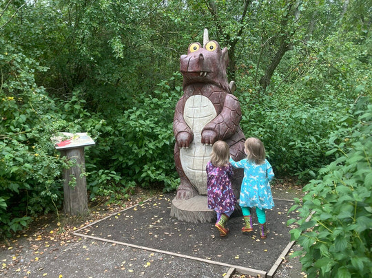 The lake is quite a long walk around. Apparently 2 miles although looked longer to me! It was far too big for my girls to walk or bike around but thankfully I took the all terrain buggy and loaded it up with them and the two bikes. The room on the broom trail is good although spread out a lot all around the lake. You can get an activity pack with the trail map, an activity leaflet, some room on the broom themed colouring pages and some crayons for £2 at the visitor centre. We also bought some duck seed for 70p a bag. The room on the broom figures looked good solid and well made although were not painted so looked a bit unloved. We have visited the trail in Brentwood, Essex in comparison. Girls are big fans so enjoyed it.