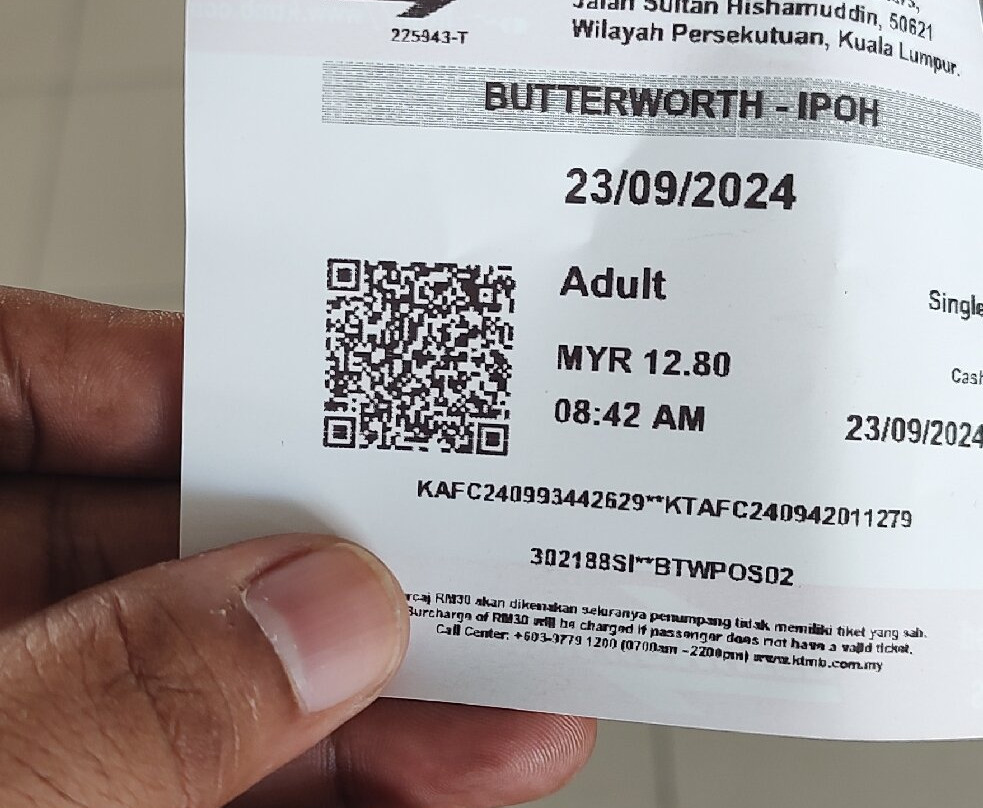 点评:Ipoh ਦਾ ਰੇਲਵੇ ਸਟੇਸ਼ਨ ਬਹੁਤ ਹੀ ਸੋਹਣਾ ਬਣਿਆ ਹੋਇਆ ਹੈ ਇੱਥੋਂ ਦਾ ਜੋ ਰੇਲਵੇ ਸਿਕਿਉਰਟੀ ਸਿਸਟਮ ਟਿਕਟ ਸਿਸਟਮ ਮੈਨੂੰ ਬਹੁਤ ਵਧੀਆ ਲੱਗਿਆ ਆਨਲਾਈਨ ਟਿਕਟ ਤੁਸੀਂ ਖਰੀਦ ਸਕਦੇ ਹੋ। ਤੁਸੀਂ ਕਿਸੇ ਵੀ ਦੇਸ਼ ਤੇ ਇੱਥੇ ਘੁੰਮਣ ਆਏ ਹੋ ਤਾਂ ਤੁਹਾਨੂੰ ਟਿਕਟ ਲੈਣ ਦੀ ਕੋਈ ਦਿੱਕਤ ਨਹੀਂ ਤੁਸੀਂ ਆਪਣਾ ਵੀਜ਼ਾ ਕਾਰਡ ਮਸ਼ੀਨ ਨਾਲ ਟੱਚ ਕਰਕੇ ਆਪਣੇ ਜਿੱਥੇ ਵੀ ਜਾਣਾ ਉਥੋਂ ਦੀ ਟਿਕਟ ਟਰੇਨ ਦੀ ਖਰੀਦ ਮੈਂ ਆਪ ਇਥੇ ਬਹੁਤ ਸਫਰ ਤੇ ਕੀਤਾ ਬਹੁਤ ਹੀ ਆਨੰਦ ਆਉਂਦਾ ਹੈ। ਖਾਣ ਪੀਣ ਇਥੇ ਬਹੁਤ ਪ੍ਰਬੰਧ ਹੈ ਵੇਟਿੰਗ ਲ ਬਹੁਤ ਸੋਹਣੇ ਬਣੇ ਹੋਏ ਹਨ ਬਾਥਰੂਮ ਵਗੈਰਾ ਦੀ ਵੀ ਬਹੁਤ ਸਾਫ ਸਫਾਈ ਹੈ। ਮੈਂ ਇਸ ਵਕਤ ਈਪੋ ਤੋਂ ਬਟਰ ਬਰਥ ਗਏ ਸੀ ਤੇ ਬਟਰ ਬਰਥ ਤੋਂ ਵਾਪਸ ਇਕੋ ਆਏ ਕੇਐਮਟੀ ਟਰੇਨ ਦਾ ਨਾਮ ਸੀ।👌