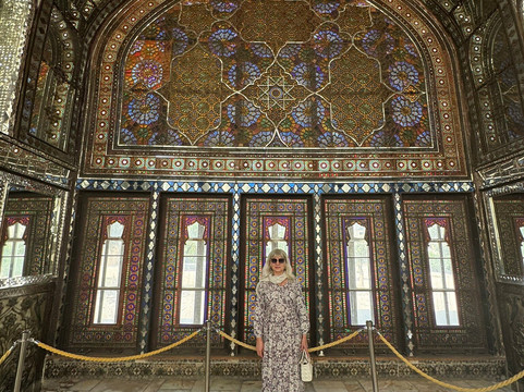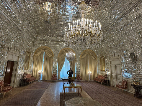 翻译:戈勒斯坦皇宫建筑群是德黑兰最古老的历史古迹之一,始于萨法维王朝统治时期,已有五百多年的历史。该建筑群由几座建筑组成,其中大部分建于卡扎尔王朝统治时期。戈勒斯坦以其宏伟的外观给人留下深刻印象,融合了伊朗各个历史时期的建筑元素。 尤其令人印象深刻的是内部的装饰,全部采用水晶和镜子,细节精致,显得十分奢华。这些宫殿是沙阿的住所,许多礼仪活动、重要节日和加冕仪式都在这里举行。除了宫殿建筑外,戈勒斯坦还有一个拥有众多喷泉的大型花园区;不幸的是,我们去的时候它们没有工作,里面也没有水。戈勒斯坦皇宫建筑群是联合国教科文组织世界遗产,也是伊朗的主要景点之一,不容错过。