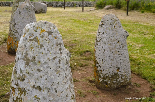 翻译:参观塔木里遗址,走43省道的必须向左绕行,有指示牌,约1公里。在塔穆里的大考古区,有六个圆锥形的贝蒂尔(拟人化的石头)矗立在巨人A的坟墓旁边;当地人一直将它们称为 sas perdas marmuradas,由玄武岩雕刻而成的直立巨石组成。三个最大的(高度从 124 厘米到 140 厘米)各有两个乳头突起,大概代表了女性世界,它们是撒丁岛唯一具有乳房的贝蒂尔实例,因此具有“女性化”特征,而其他三个较小的贝蒂尔则代表了女性世界。 (从95厘米到108厘米)没有草稿,可能代表男性世界。该遗址与 Nuraghe S.Barbara 和 Filigosagosa 地区一起,完成了该市“考古之旅”中最重要的部分。