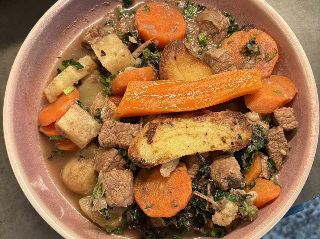我们订了爱尔兰炖菜和蔬菜烩饭,准备在抵达当晚在小屋里享用。味道好极了!真希望有办法在网站上订餐。根据网站规定,餐食需要在下午3点前订,但入住时间为下午3点至4点。 Mary 和我们合作得很好,她和我们咖啡馆/厨师也合作愉快,我通过 WhatsApp 和她保持联系。