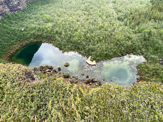 还有一条通往峡谷的道路,尽头位于南端湖泊附近的一个小型停车场。湖水清澈见底。您可以看到不少北极红点鲑在湖中游动。环绕湖泊的悬崖也是众多筑巢鸟类的家园。这里的停车场也提供免费卫生间。
