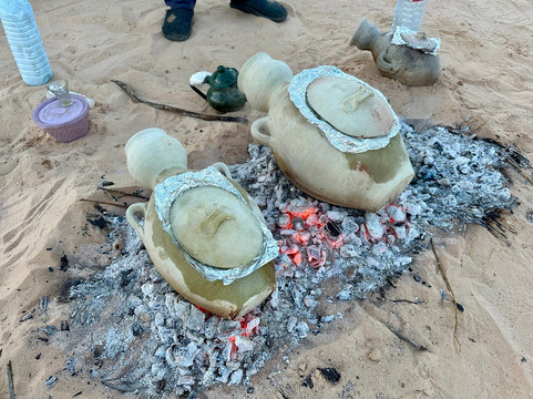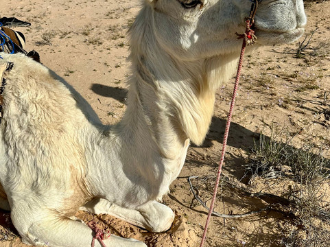经过一段美丽而平静的骆驼骑行后,我们到达了已经为我们搭建好的贝都因帐篷,晚餐已经开始了。食物美味可口,丰盛而慷慨——第二天早上的晚餐和早餐!所有的导游都非常好。他们的音乐很美,火炉温暖而诱人。我从来没有被如此宠坏过!