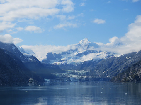 点评:President Calvin Coolidge declared ‘Glacial Bay’ to be a National Monument in February 1925. His intent was that all that natural beauty should be preserved for future generations. Today’s Glacier Bay is roughly the size of Connecticut with 1,375 sq. mls. of alpine glaciers, which account for more than ¼ of the park area, with most glaciers originating in mountains with elevation ranges of 8,000–15,000 ft.