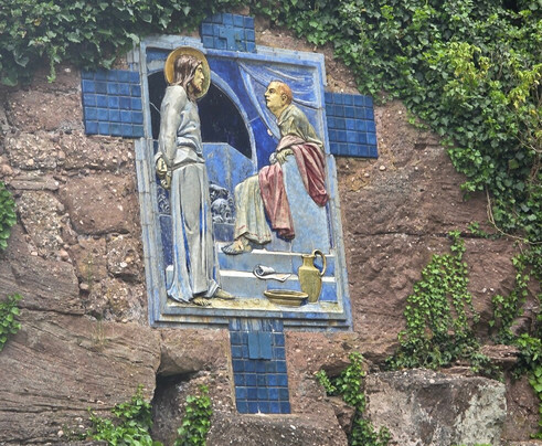 Les paysages sont superbes, avec beaucoup de promenades ombragées autour du site, une très belle forêt, de beaux rochers et ça et là des sculptures monumentales en mosaïques ou bas/hauts reliefs évoquant notamment le chemin de croix.