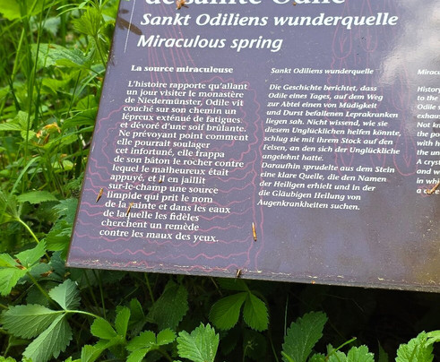俯瞰遗址的圣殿也令人印象深刻,里面有一座美丽的教堂、一家不错的自助餐厅、一个关于遗址历史的精彩展览,当然还有圣奥迪尔的雕像。她的主要活动是与她的猎人一起冥想!为她视障的亲人祈祷,愿他们重见光明!