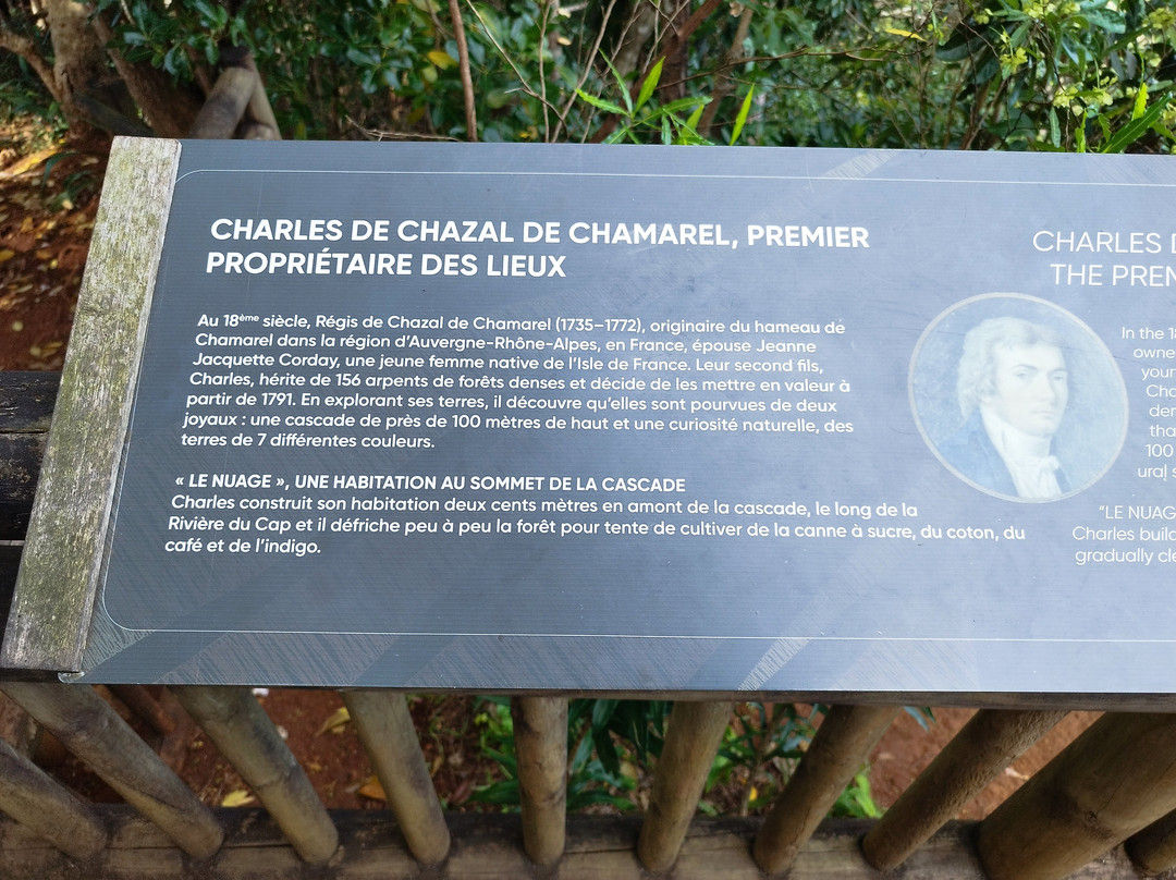 Le lieu porte le nom de Régis de Chazal de Chamarel, un propriétaire terrien du 18ᵉ siècle qui fut l’un des premiers à explorer et mettre en valeur cette région. Cette dimension historique ajoute une profondeur supplémentaire à la visite. On ne découvre pas seulement un site naturel : on marche sur les traces d’un patrimoine culturel et humain qui a façonné l’identité de cette partie de l’île.