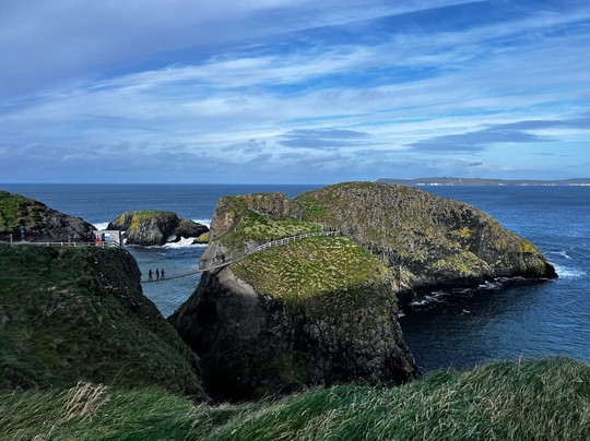 翻译:参观完巨人堤之后,我们沿着公路前往卡里克索桥。我的同事们强烈推荐我们去那里,它距离巨人堤大约15分钟车程。我们一路顺利到达,但途中有一段路比较危险:我们穿过一个小镇,一些车辆停在了我们的车道上(在北爱尔兰,这种做法是合法的,但仍然非常危险),迫使我们变道超车。