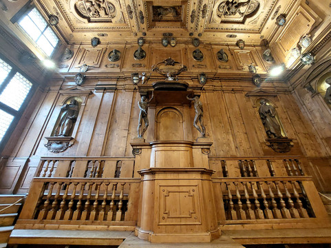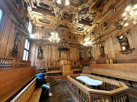 翻译:该房间由安东尼奥·莱万蒂 (Antonio Levanti) 于 1637 年用木雕建造,用于教授解剖学,显然位于阿奇吉纳西欧宫 (Archiginnasio) 大楼内,该大楼从 16 世纪中叶到 1803 年一直是博洛尼亚大学的所在地。这个房间与阿奇吉纳西欧宫的其他教室以及公共区域和通道区域完全不同,其特点是色彩非常丰富多样的彩色装饰,包括徽章、墓碑、浅浮雕等,因为它完全用木材覆盖和布置,其中有古代著名医生的雕像和大学著名医生的半身像。天花板上是阿波罗雕像,周围环绕着星座符号,而读者座位上方的华盖则由两座埃尔科莱·莱利雕像(被称为“gli Spellati”)支撑。它虽小,但历史悠久,独特而迷人,是令人惊叹的阿奇吉纳西奥大厦中的一颗瑰宝。参观阿奇吉纳西欧宫的公共区域和通道区域是免费的,但要参观解剖剧院则必须购买门票,但价格不高(3 欧元),凭此门票还可以进入圣母悼歌室。