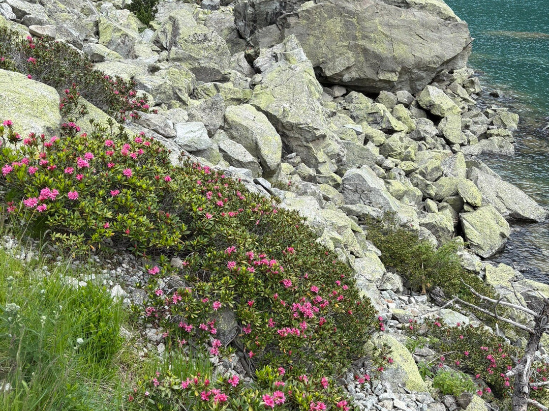 洗手间在售票处后面的左边。售票处在左边。我们单程花了24欧元,两人一起坐缆车然后坐升降椅。很有趣。需要半小时才能上山,然后轻松步行15分钟到湖边,那里有一家餐厅/咖啡馆(只收现金,而且价格相当昂贵)。我们绕着湖走到湖的尽头去野餐。我的体力一般,路比较崎岖,但很值得,大约花了半个小时。你必须跳过一条小溪才能到达草地。沿着山谷往上走,还可以走更远的路,但这是一条真正的徒步路线。风景优美,野花盛开,美不胜收。