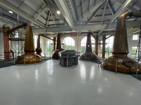 在学习了威士忌酿造课程,参观了蒸馏器和生产流程后,Andrew 开车带我们去了仓库(没错,仓库很大,你得开车去)。仓库里存放着成千上万桶好酒,闻起来也特别香。我们在那里又待了一会儿,还有机会品尝了未经加工的桶装威士忌——味道浓郁,但品质极佳。