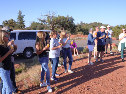 The flight was smooth and peaceful, drifting above canyons and red rock formations as the golden light of sunrise spread across the landscape. Mark’s guidance throughout made the journey even more special. After landing, we were treated to a champagne toast with mimosas, sharing laughs with the crew and fellow passengers.