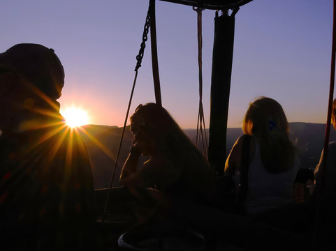 飞行平稳而宁静,在峡谷和红色岩层上空飘荡,金色的日出光芒洒满大地。马克全程的指导让这段旅程更加特别。着陆后,我们享用了香槟和含羞草鸡尾酒,与机组人员和其他乘客欢声笑语。