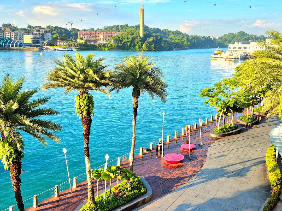 I went up to the top balcony at the upper floor and enjoyed a panoramic view of Sentosa coast and the promenade. The mall interior looked desolate and quiet and dark, a different Vivo city.