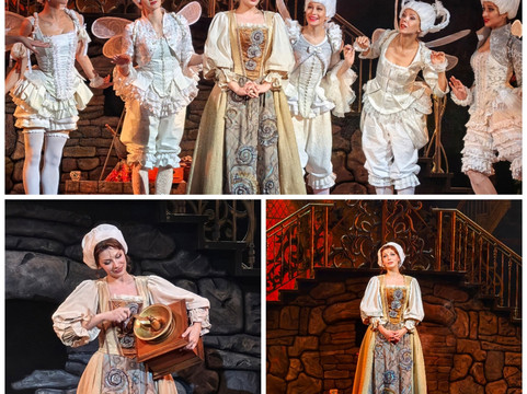 精美绝伦的华丽服饰、奢华的舞会礼服、国王的优雅长袍、惊艳的仙女教母、滑稽可笑的继母和姐姐们的服装、引人入胜的男性角色服饰,甚至连灰姑娘的水晶鞋——所有细节都经过精心制作,并通过巧妙的灯光照明,让观众在剧院的任何角落都能清晰可见。