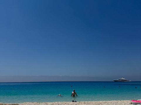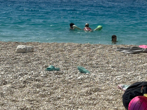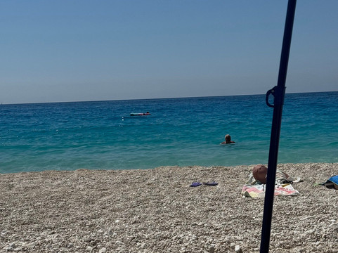 这片海滩并非商业化,除了洗手间外,没有其他设施。如果您抢不到为数不多的几张日光浴床,则需要自带遮阳伞和躺椅/太阳椅。海滩面向大海,右侧铺满了细腻的白色鹅卵石/沙滩,而左侧则布满了砾石,靠近悬崖,悬崖上清晰地立着落石警示牌。我永远无法理解为什么人们仍然把毛巾和遮阳伞直接放在悬崖下面。