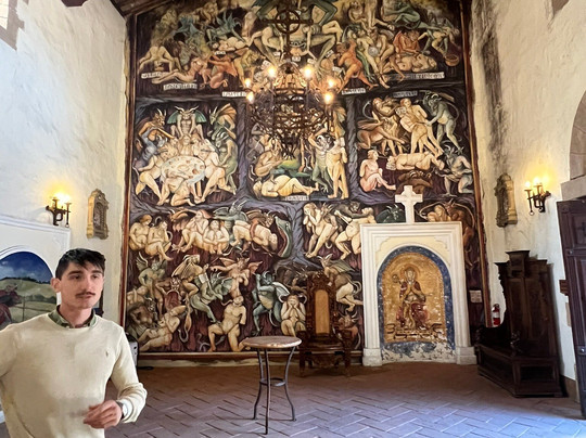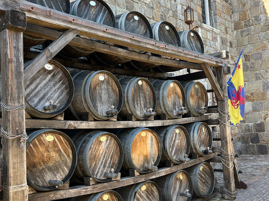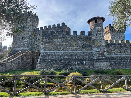 翻译:这里有很多庄园,但只有一座城堡——阿莫罗萨城堡(Castello di Amorosa)。这座城堡以一座中世纪意大利城堡为原型,建造过程中使用了从欧洲各地运来的真实遗址。为了尽可能还原城堡的原貌,工匠、画家和金属工匠也被特地请来。阿莫罗萨城堡位列TripAdvisor全球十大城堡之旅榜单。参观从教堂开始,蜿蜒而上几层,然后穿过城堡的仓库、军械库和地牢。直接从酒桶里品尝新酒真是一个意外的惊喜。我们的导游马泰奥是一位非常友善的意大利小伙子,他对城堡的历史和葡萄酒都非常了解。最后,我们还可以从大约25种葡萄酒中挑选5种进行品鉴。除了找到一款新酒之外,我还带回了无花果仙粉黛香皂、一支白茶香薰蜡烛和一些比利时巧克力。虽然我在那里待了将近三个小时,但参观过程并不觉得累,反而感觉时间过得很快,因为有很多东西可以看。对于葡萄酒爱好者和历史爱好者来说,这都是一次很棒的体验。