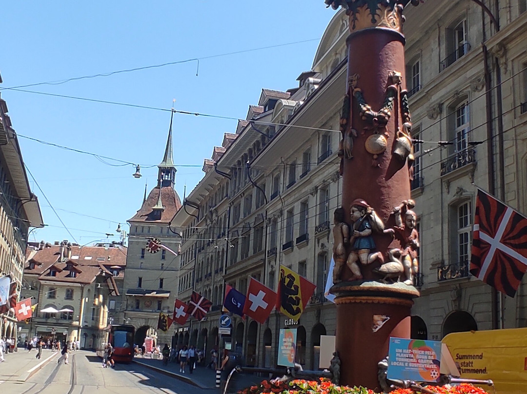 点评:Città finale e capolinea del trenino verde delle Alpi,un tuffo nel medioevo,piacevolmente stupita ed incantata da tanta bellezza! La stazione e' proprio in centro,si percorre una lunga strada ordinata con fontane decorate con le leggende della città a cominciare da quella dell' orso simbolo svizzero. Acqua potabile che sgorga dalle fontane in mezzo alla via dove circolano i pedoni e al lati i tram rossi. Si susseguono 6 o 7 archi con torri e con le rispettive fontane...meravigliosa! Non avevo ancora mai visto una città con una architettura simile. Particolare la torre dell orologio con un meccanismo formato da pupazzi e lancette a forma di stelle, peccato non avere avuto il tempo di visitarla all interno!Ai lati della via principale portici e negozi sotterranei con porte che si aprono dal suolo e scendono giù. Molto caratteristico. Nel centro si trova la chiesa in stile gotico con vetrate all' interno colorate e luminose.,la sede del parlamento svizzero e la casa di Einstein dove ha elaborato la teoria della relatività. 2 orette appena sufficienti per girare a piedi tra i monumenti principali. Poi alla sera si riprende il treno Berna Domodossola e ci si gode il paesaggio senza interruzioni.Esperienza veramente da fare!