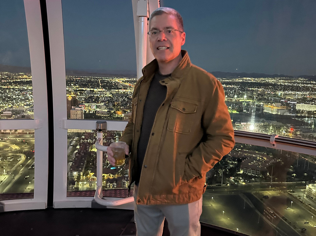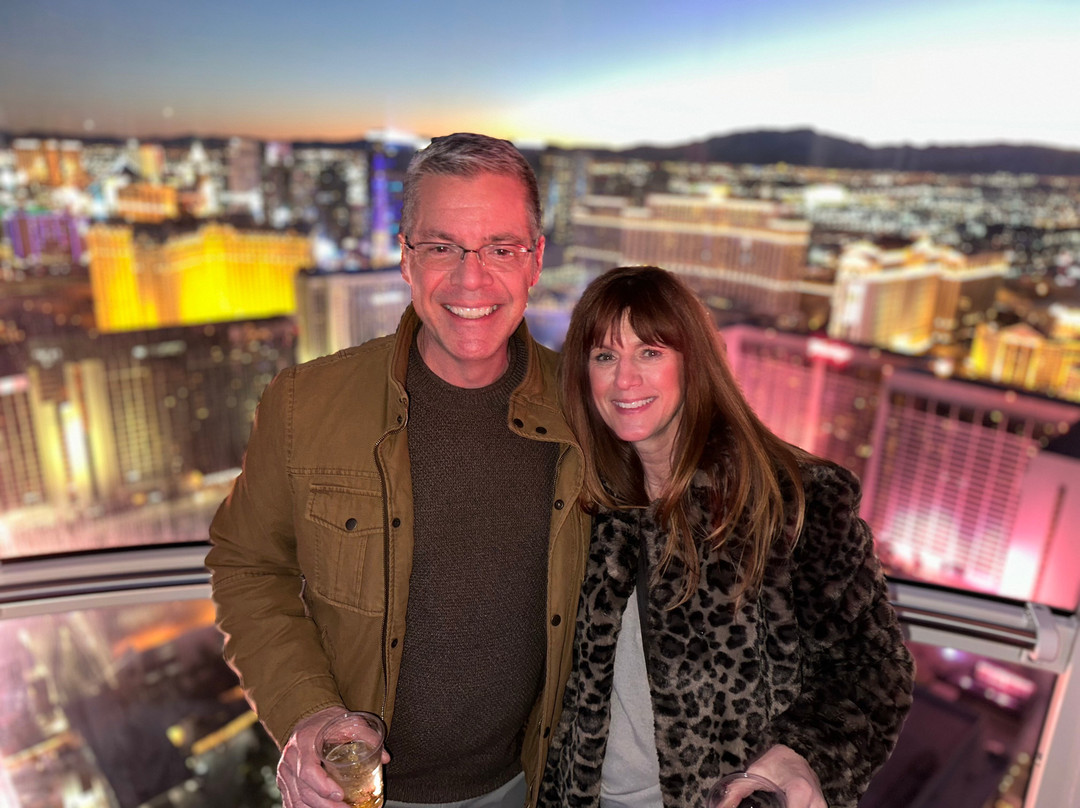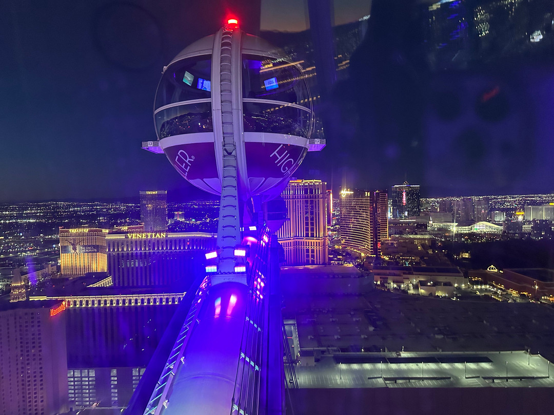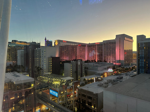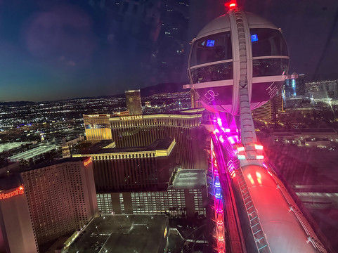 点评:This was an absolutely fantastic kick off to our 4 nights in Vegas. We got to the wheel Thursday 2/20 at about 5:40 pm. It was JUST after sunset and before last light. It was PERFECT. When we started the rotation it was still light enough out to really see clearly. Then, it just got darker and darker and the city lit up in bright vibrant colorful lights. Perfect!