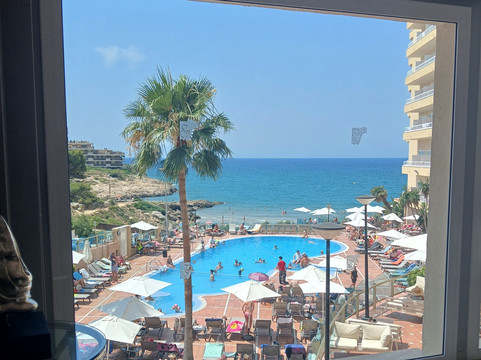 如果你像我们一样乘坐早班飞机从盖特威克机场飞往西班牙,我们上午11点就到了酒店,但我们的房间要到下午3点才能入住,所以请穿着短裤,带上防晒霜,在房间准备好之前去泳池游泳,酒店有带锁的房间可以存放你的行李。