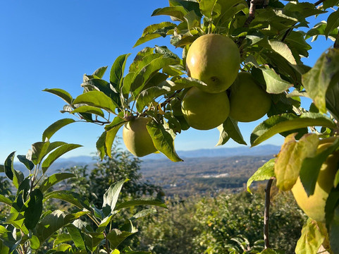 点评:We decided to visit the orchard and when getting up early to leave to do s hike first I realized we needed tickets for that day. All regular tickets were sold out until 3pm. So we got the 3pm tickets but when we got there at 2:50 it was extremely crowded still. Yes the views are very nice, but with all of the people and lines and smell if exahust from the hay ride which costs aditional money it's a bit overstimulating. We paid for our apple bags after standing in line for 30 minutes or so then made the trek up the mountain to the apples, it was a steep uphill of maybe a half mile up to get to the fujis and the kids were having a little bit of a time since it was also hot in the sun even though it was only 65 degrees, but mostly no shade. I'm glad we didn't get a big box to carry, because we had to carry the youngest some and with the loose gravel and apples it seems it would be easy to slip with a big box of apples in both hands. I wish they just let less people in at a time I guess, it's just super crowded, we had planed to get ice cream and adult beverages and relax on the lawn but the lines were all super long so we just picked up ice cream on the way home.