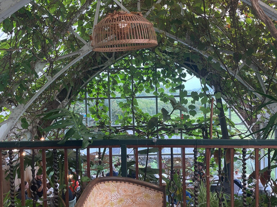 抵达后,我们走进玻璃谷仓,里面有咖啡馆和商店,热情的款待令我们印象深刻,美丽的环境也让我们印象深刻。燃木壁炉、复古家具和琳琅满目的美味蛋糕令人赏心悦目,但真正让这里感觉如此独特的,是攀爬在玻璃结构上的葡萄藤,让我们在等待参观时间的同时,可以在这里享受“茶点”。服务礼貌高效,茶和蛋糕也非常美味。