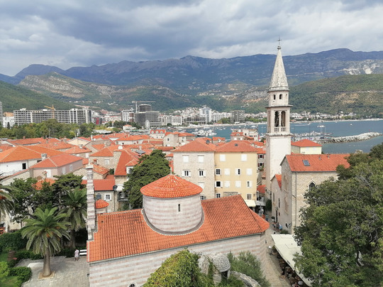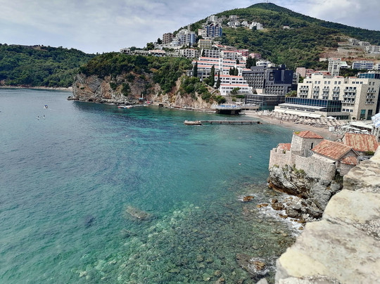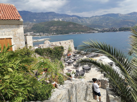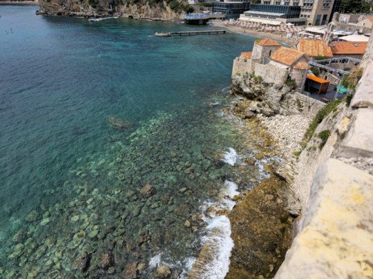 Людей здесь днем оказалось немного, можно, не особо толпясь, побродить по лестнице вверх-вниз, насладиться яркими видами, позавидовать тем, кто нежится на пляже по соседству (им-то головы и тела не так напекает, а в случае чего они могут нырнуть в прохладное Адриатическое море), понаблюдать за крышами домов Старого города.