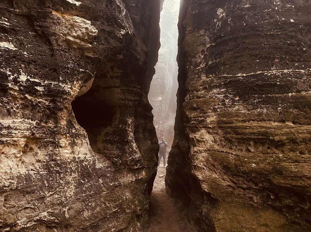 导游米卡尔知识渊博,耐心十足!徒步的最初一段是上坡路,虽然路程不长,却颇具挑战性。雾气弥漫,随着我们继续攀登蒂萨岩,能见度也越来越低。