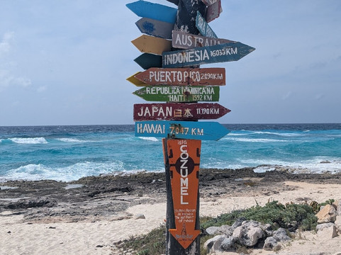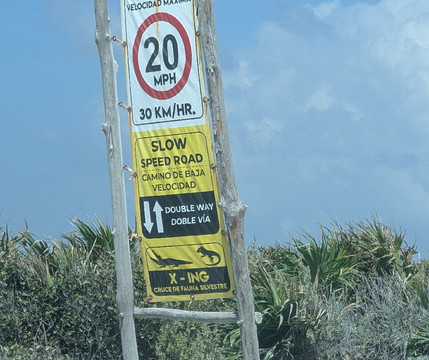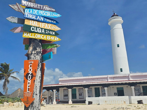 Stop 1 is a lagoon with watchtower and Mayan ruins. Stop 2 is the lighthouse, famous Cozumel signpost, stalls and toilets. Along the bumpy dirt track further are 2 beach carparks, Stop 3. The second also has the lagoon where thankfully we were told at the entrance had boat trips at 12, 1, 2pm. This made the entrance worth it as during the half hour trip we saw several crocodiles and the guide was informative. We also enjoyed the beach and one of the beach bars.