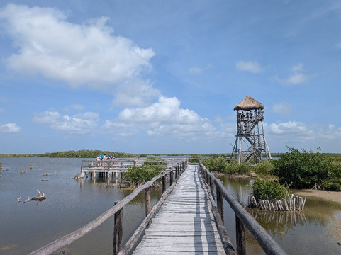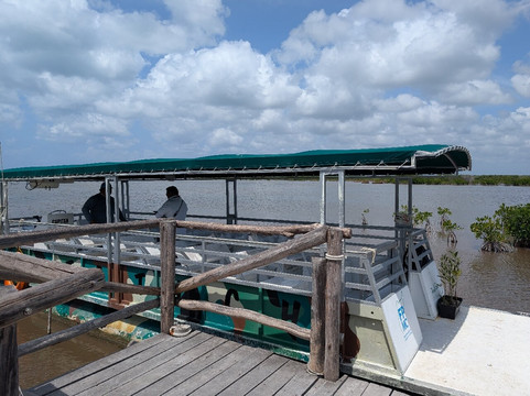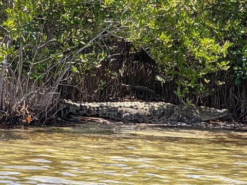 站点1是一个泻湖,有瞭望塔和玛雅遗址。站点2是灯塔,有著名的科苏梅尔路标、摊位和厕所。沿着颠簸的土路继续前行是两个海滩停车场,即站点3。第二个停车场也有泻湖,谢天谢地,我们在入口处被告知下午12点、1点和2点有游船。这使得入口处值得一看,因为在半小时的旅程中我们看到了几条鳄鱼,导游也很博学。我们也很喜欢海滩和其中一个海滩酒吧。