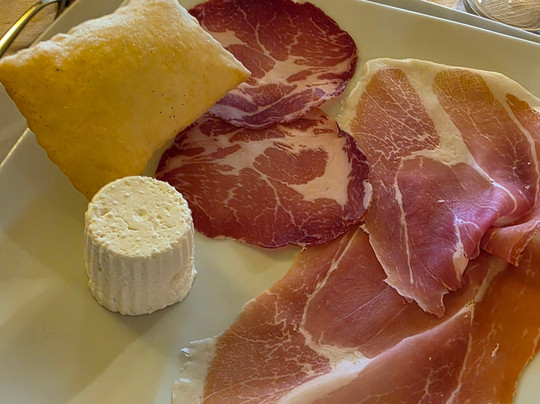 我们还在酒庄旁的农舍享用了伊尔皮尼亚特色美食,每道菜都搭配了安东尼奥·卡贾诺酿造的各种葡萄酒。