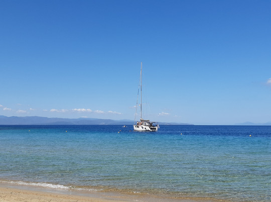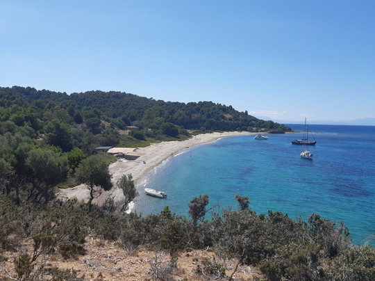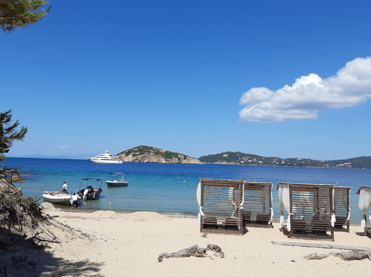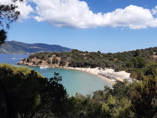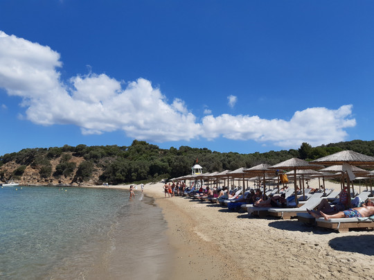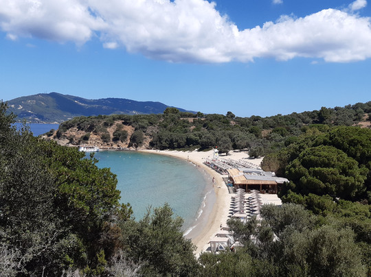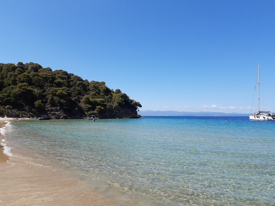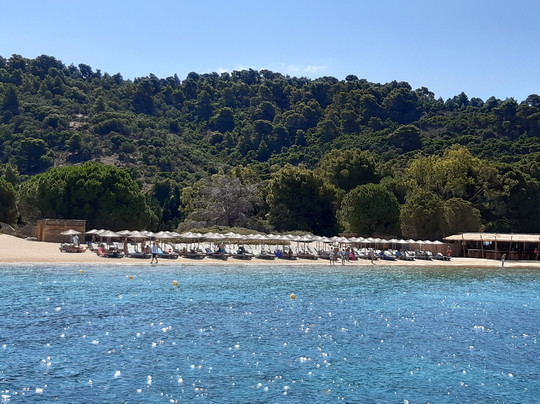 点评:L'isola di Tsougria si raggiunge dal porto della città tramite taxi boat, ad orari prestabiliti, con 12 euro a/r in circa 15-20 minuti di traversata. Un piccolo paradiso attrezzato con ombrelloni e lettini (comodi), beach bar con musica piacevole durante la giornata e taverna dove mangiare. I prezzi sono medio/alti ma bisogna considerare che si tratta di un isolotto disabitato e quindi tutto viene portato via mare dall'isola di Skiathos. Disponibili servizi igienici e docce, entrambi con acqua salata. Un'isola davvero bella, sono stata per due giorni nel mese di giugno e ho trovato sempre acqua meravigliosa, cristallina, e la giusta ventilazione. E' sabbiosa, con fondale che scende lentamente per cui adatta anche ai bambini. Sono presenti zone attrezzate e anche zone libere, con possibilità di trovare ombra sotto la vegetazione. Seguendo alcuni sentieri si può esplorare anche una parte dell'interno e salire su una piccola collina fino a raggiungere una chiesetta abbandonata, vista mozzafiato! Io ho fatto la salita in ciabatte senza particolari difficoltà ma comunque con un paio di scarpe da ginnastica sicuramente si va meglio.