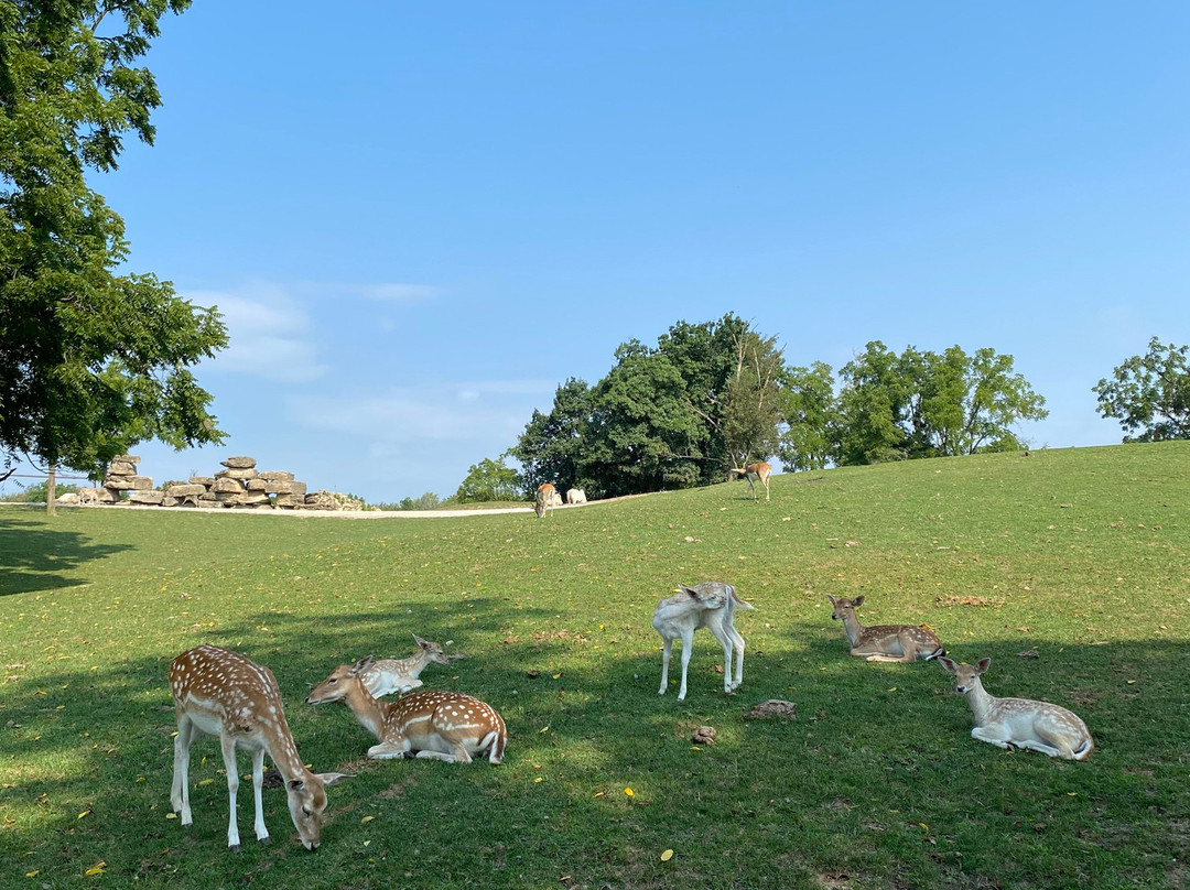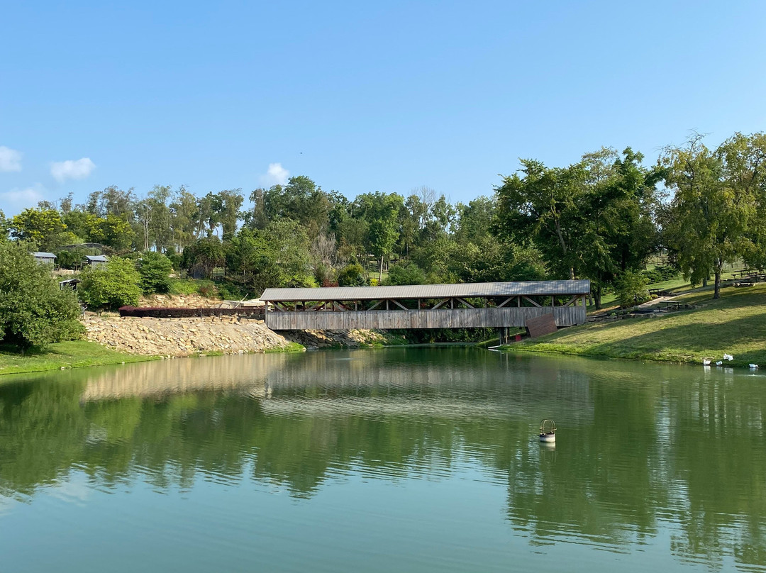 点评:Good trip. We arrived at approximately 9:30 am and made our way towards the entrance of the farm. Admission into the farm was cash only and they did not accept debit or credit cards. The farm was on the larger side and there was a lot to see and do. We started off our day by getting in line for the wagon safari ride. We waited in line for the next available tour and then boarded the wagon with a dozen or so people. Each wagon came with multiple buckets of food to feed the animals with. We began the trip and the tour guide stopped on the road multiple times to allow us to take pictures and feed the animals. We saw a variety of animals including deer, zebra, camel, cattle and even a giraffe. The animals were very friendly and came directly up to the wagon to get fed. The wagon tour lasted roughly one hour. After the wagon ride we decided to walk around the farm and view some of the other animals. There were multiple animals out on display, both in cages and in fenced in areas. There were informational plaques in front of each animal, detailing some fun facts about them. The farm had a big collection of various birds and peacocks. After viewing the animals we went off to explore some of the buildings on the property. There were several barns that we viewed, including the diary barn and the horse barn. We were also able to view the Amish Farm house, and see how the Amish people live and conduct their business. We received free complimentary cookies here as well. The property also included features like a pond and a covered bridge.