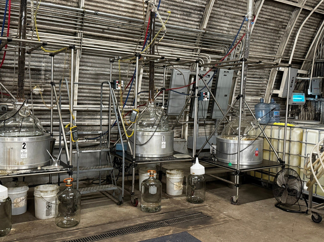顺便提一下,我们还参加了海洋伏特加之旅。这次体验亲身体验,乐趣多多。你可以闻到菠萝发酵的香味,了解哈利迈勒(Haliimaile)的蒸馏过程。