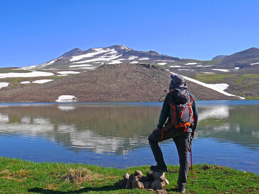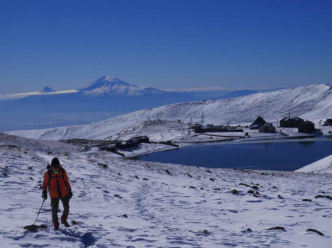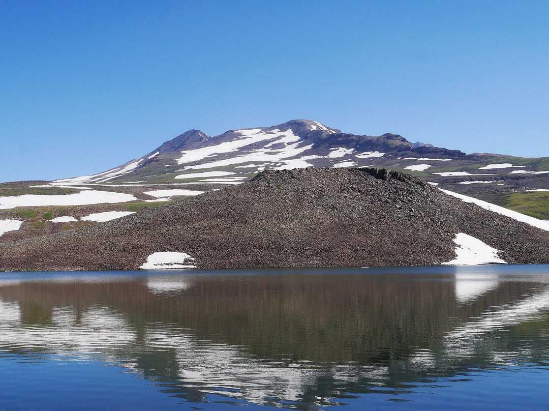 翻译:卡里湖是亚美尼亚境内轿车可通行的最高点,这得益于一条虽老旧但已铺设沥青的道路。卡里湖海拔3200米,也是攀登阿拉加茨山的主要起点,尤其是南峰和西峰。若要攀登东峰和北峰,从格加罗特瀑布附近出发则更为理想。