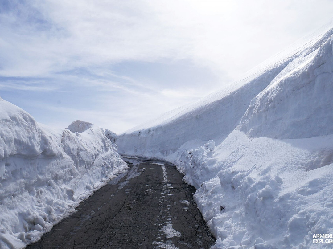 The road is usually open from mid-May to mid-October, but conditions can change quickly, especially early in the morning if the bulldozer has not yet cleared the snow. There is a restaurant on the lakeshore serving the traditional Armenian dish khash; it is also responsible for keeping the road clear of snow. Some sections are exposed to strong winds, and from mid-September onward, snow may remain on the ground. Drivers using rental cars with summer tires and limited mountain-driving experience can easily get stuck.