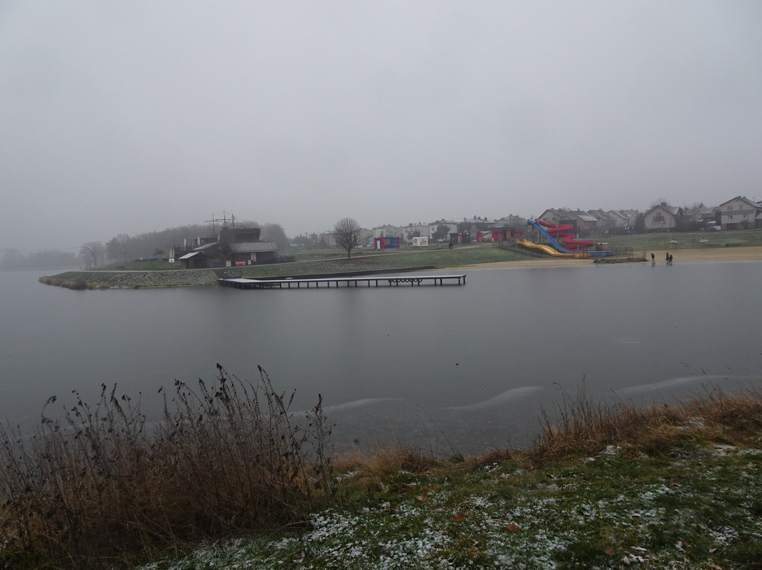 点评:Zbiornik retencyjno-rekreacyjny zbudowano na rzece Skierniewce w latach 1966-70. W latach 1996-99 podlegał rozbudowie , która nadała mu obecny stan .Kilka lat temu przeszedł kolejną zmianę . Ścieżki wokół zalewu wylano asfaltem , zniszczono przy okazji tych prac sporo starych drzew. Nieustannie od tego czasu rozbudowuje się infrastrukturę wokół zalewu .Stracił dla mnie swój urok ale stał się bardziej popularnym miejscem rekreacji i rozrywki . Ścieżki są oświetlone , pozakładano kamery i jest pewnie bezpieczniej .W sezonie letnim działa strzeżona plaża z innymi atrakcjami .Są toalety i nawet przebieralnia .W weekendy bywa tu nawet tłoczno . Wybrałem się tu I i II dnia świąt i było bardzo spokojnie . I dnia świąt było prawie 10 stopni mrozu ale było też bardzo słonecznie . Spotkałem kilku biegających , dwóch rowerzystów i kilkanaście osób spacerujących oraz jedną damę na wrotkach . II dnia świąt mróz zelżał ale było mgliście i opadała marznąca szadź. Napotkałem kilka osób morsujących i niewielu spacerowiczów. Za to był generalnie spokój , którego od lat mi tu brakuje. Rowerem tu w ogóle już nie jeżdżę bo wolę wypad do lasu .
