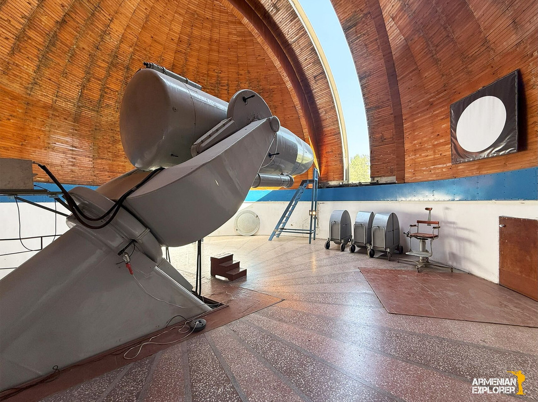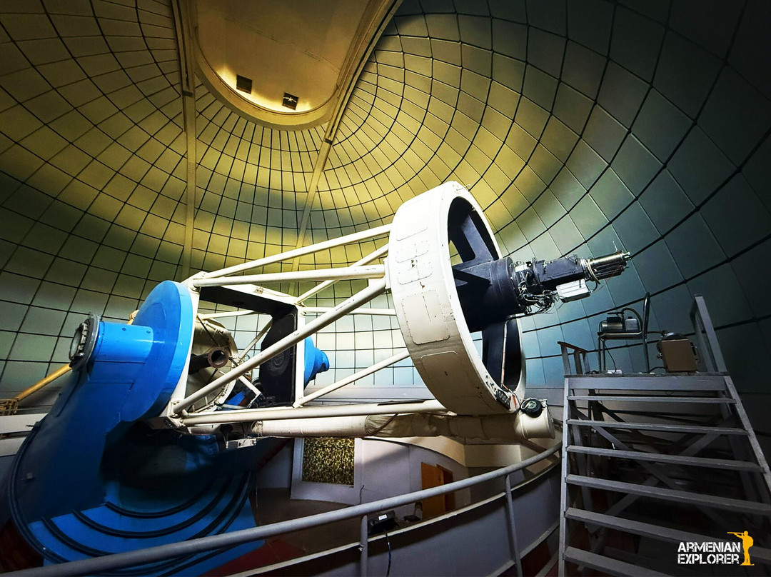 One of the main highlights is the 1-meter Schmidt telescope, famously known as a gift from Adolf Hitler to Benito Mussolini. In 1965, astronomer Benjamin Markarian used this telescope to conduct the First Byurakan Survey (FBS). During this work, he discovered numerous faint galaxies with strong ultraviolet radiation. These objects later became known as Markarian galaxies, named in his honor.