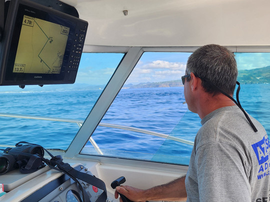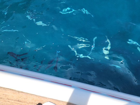今天我带了一位残障乘客和我们另外两位乘客,他不仅轻松地满足了我们所有人的需求,还满足了我们的特殊需求,让我们的旅程无微不至!我们非常幸运,不仅在海上发现了两头抹香鲸,还有数百只海豚陪伴我们度过了一个多小时。