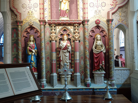 有趣的物品包括亨利八世的理发师外科医生埃德蒙·哈曼的纪念碑、劳伦斯爵士和坦菲尔德夫人华丽的天篷墓以及迷人的塔钟摆。
