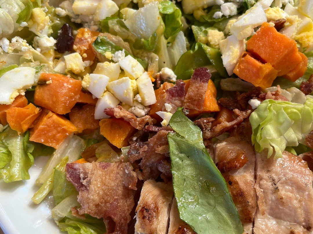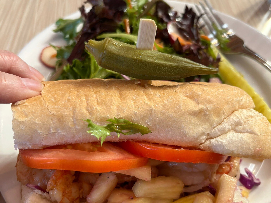 午餐不错,但对于有多种食物过敏的人来说选择有限。菜品不能调整以去除过敏原,比如沙拉里的蔓越莓。我点了他们家的虾肉三明治(Shrimp Po'Boy)。虾肉三明治味道不错,但我觉得它算不上真正的波伊三明治(Po'Boy)。我丈夫点了厨师沙拉。