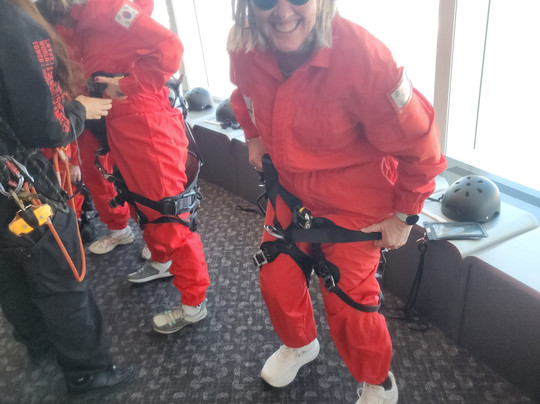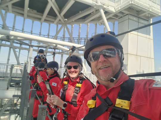 We awaited our allotted time and went and got kitted up and then was taken on the tour. It was very safe and you are harnessed in and connected to a safety line. Its high but not to scary. I have a fear of heights but this wasn't to bad.
